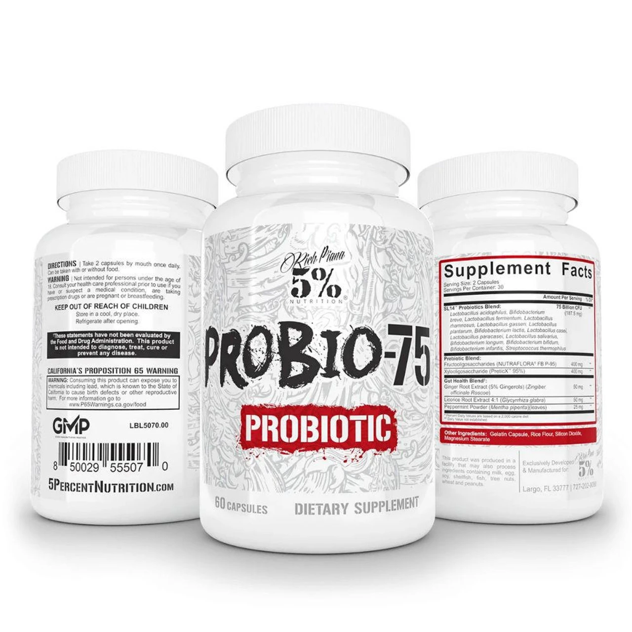 5% Nutrition Probio-75 is a prebiotic and probiotic supplement that helps to improve how your body digests, processes and absorbs proteins, carbs and fats. This formula also helps to increase nutrient absorption, revitalize your metabolism and eases stomach discomfort.