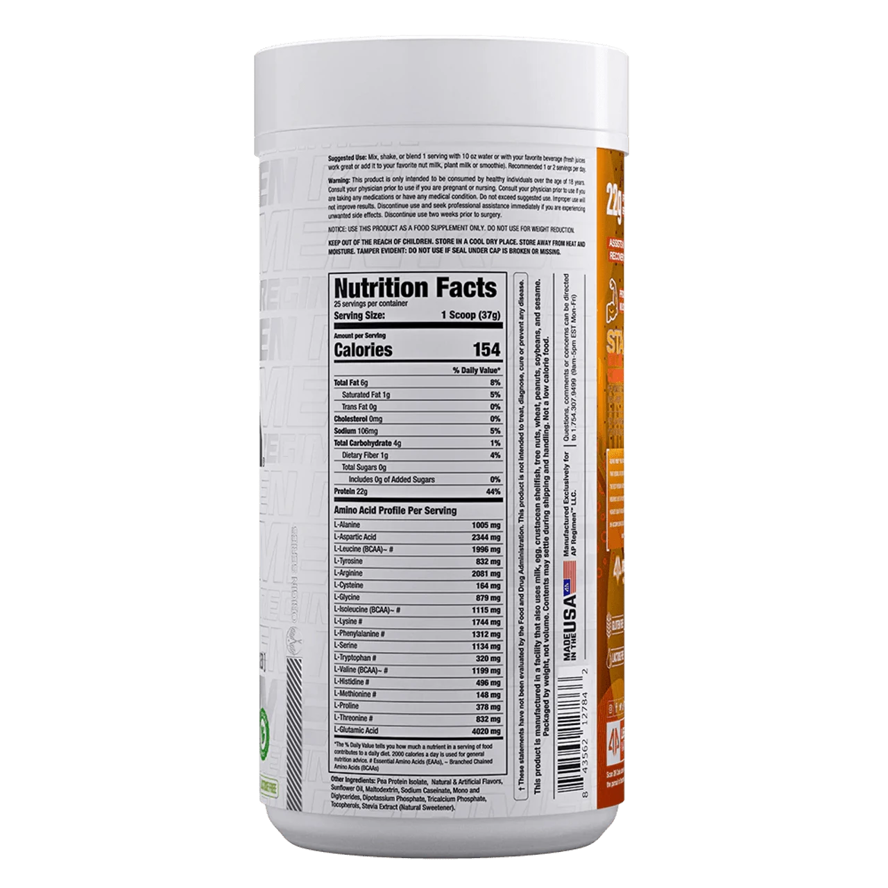 Alpha Prime Vegan Protein is a 100% All Natural Plant Based Protein powder that’s both vegan and vegetarian friendly and which packs 22 grams of pea protein into each serving along with 9.1 grams of EAAs and 4.3 grams of BCAAs, best of all this protein powder tastes great, has a great texture and contains zero sugar!