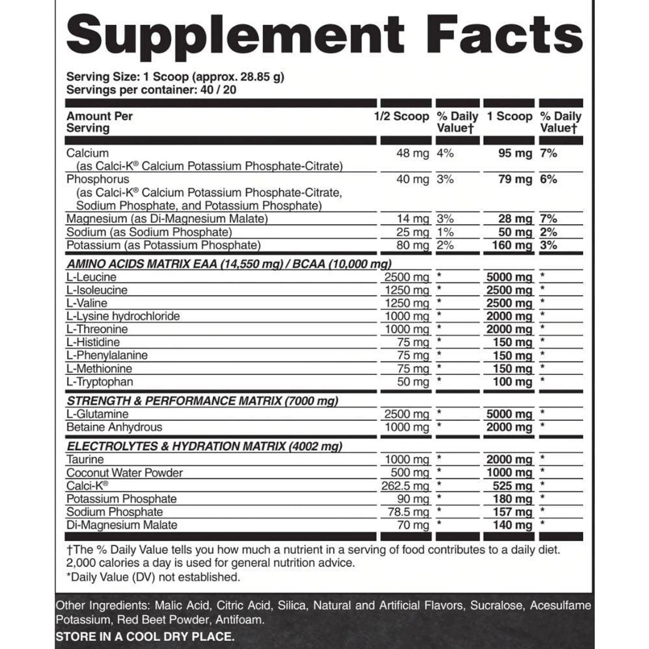 Mix 1 scoop with 12-16 ounces of water and drink before, during or after your workout. Can also be sipped throughout the day in place of plain water.