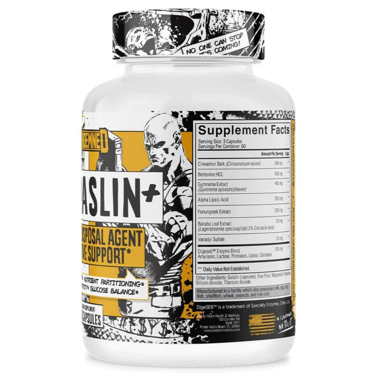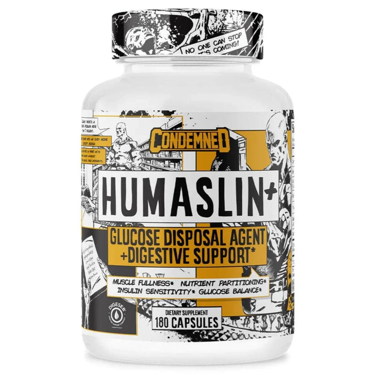 Condemned Labz HumaSLIN is now available in a Supersized 180 Capsule bottle providing 90 servings per bottle. HumaSLIN is a Glucose Disposal Agent, better known as a GDA supplement which aims to help with glucose disposal and glucose utilization, it may help battle fat storage and helps with the partitioning of nutrients in the body. Grab yourself a bottle today.