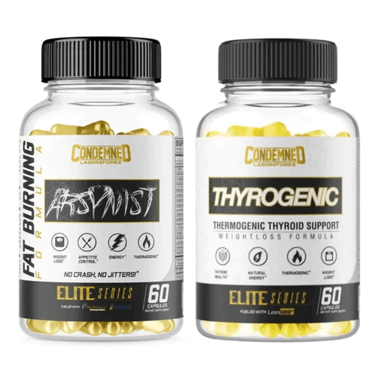 Our Condemned Labz Shot Caller stack features one of our hottest selling and one of the most intense fat burner products on the market, Arsynist which features a hefty dose of DMHA along with Caffeine, Higenamine, Hordening and other stimulants as well as thermogenic ingredients to get your sweating in the gym, that help to suppress your appetite, and which increase thermogenesis. Arsynist has been stacked with Condemned Labs non-stimulant fat burner and thyroid support supplement Thyrogenic which aims to support thyroid health, to support your bodies stress response and to boost mood and focus while encouraging greater fat burning. If you’re trying to cut weight this is one of the best fat burning stacks on the market.