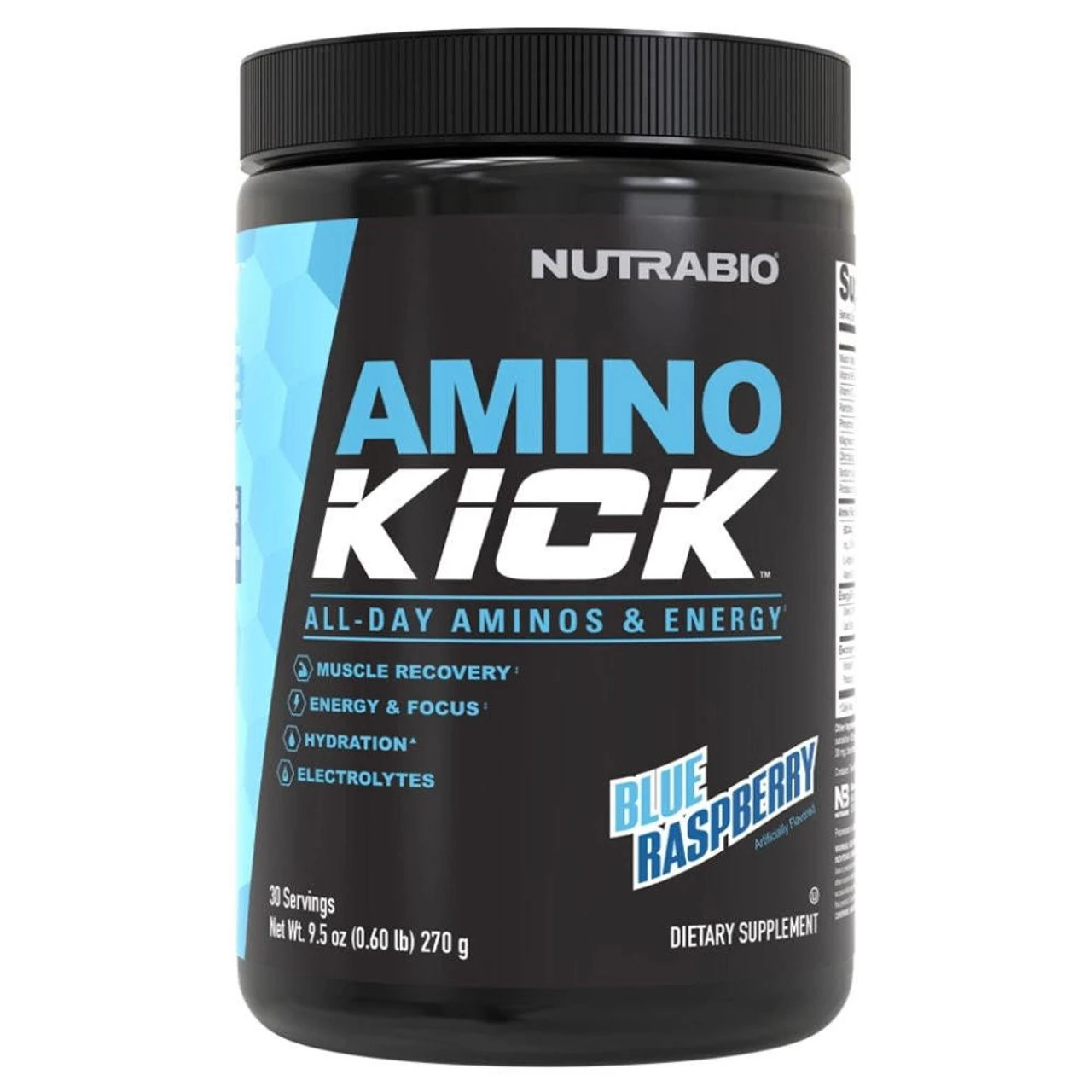 NutraBio Amino Kick is an All New Energized Amino supplement which features BCAAs, an Electrolyte and Hydration Mix to keep you hydrated, and an Energy and Focus Matrix which provides 100mg of Natural Caffeine from Green Coffee Bean. Amino Kick can be used as a low stimulant preworkout, a coffee alternative, afternoon pick me up, or as a post workout recovery supplement to help muscles recover and to help alleviate muscle recovery post-workout. NutraBio Amino Kick comes in a variety of great tasting flavors and is a joy to drink, grab yourself a tub today!