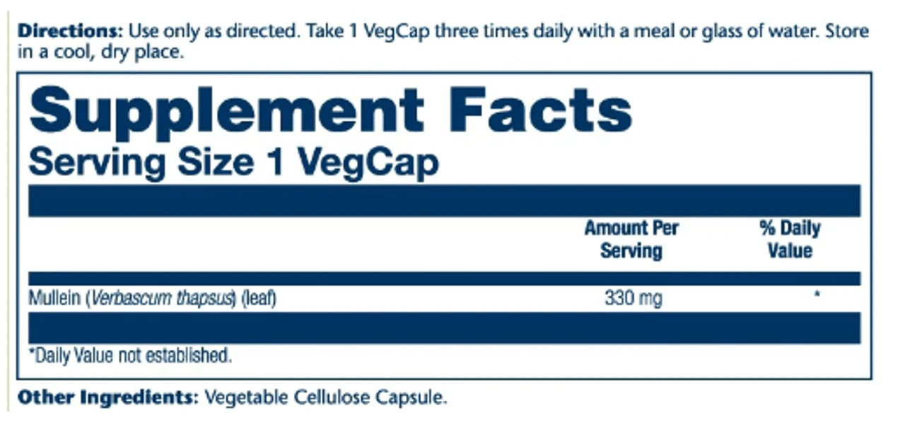 Solaray Mullein Leaves 330mg 100 Capsules Ingredients
