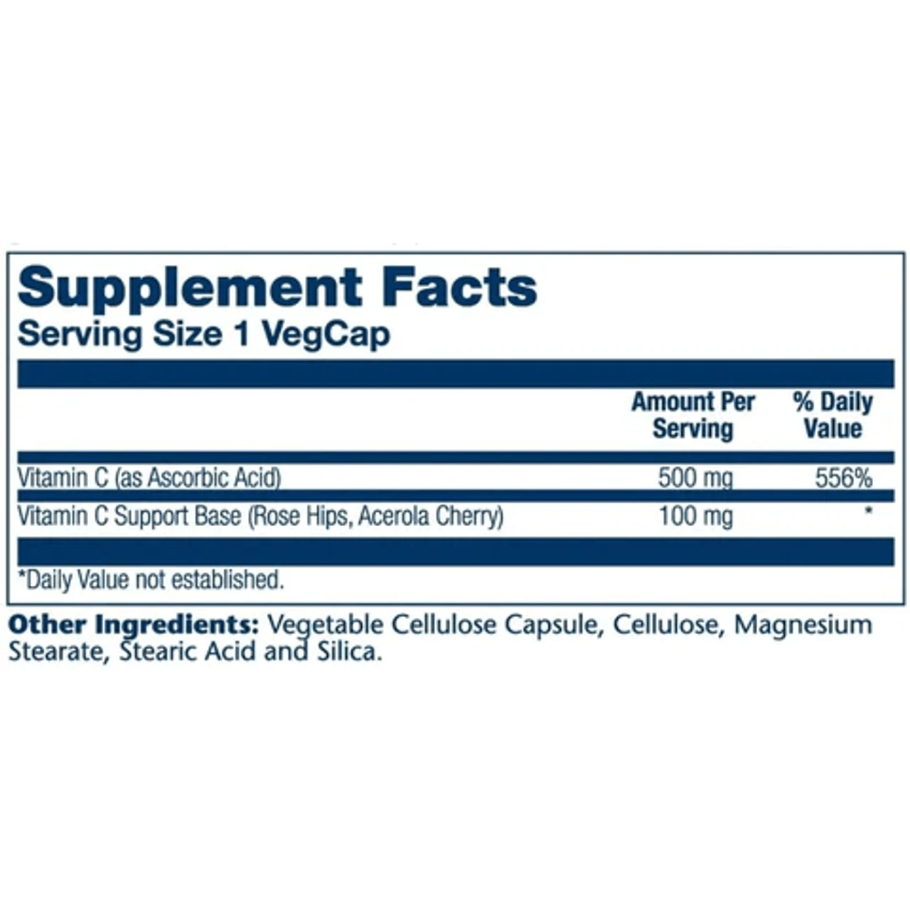 Solaray Vitamin C Time Release w/ Rose Hips & Acerola 500mg 250 Capsules Ingredients & Supplement Facts