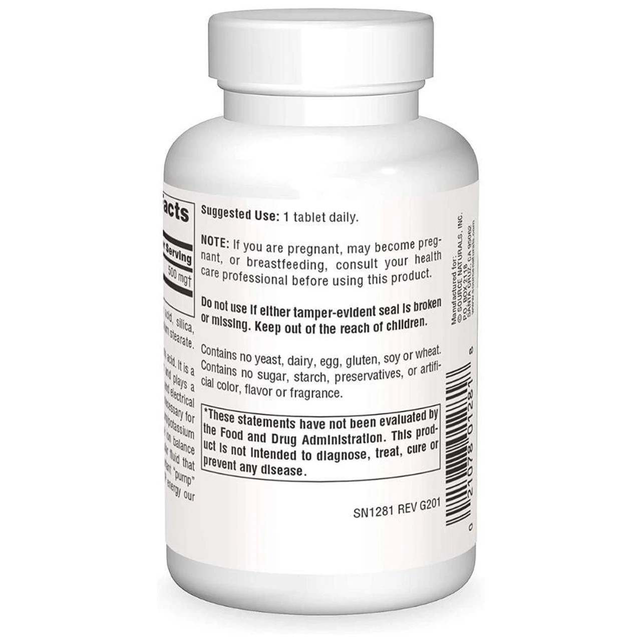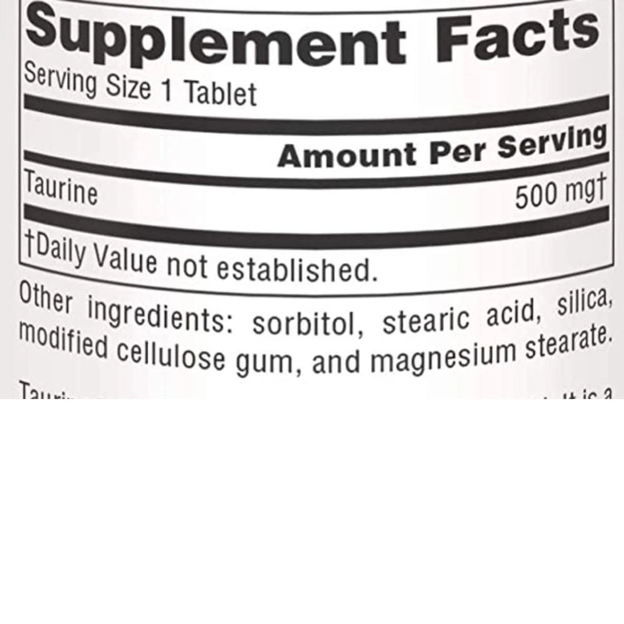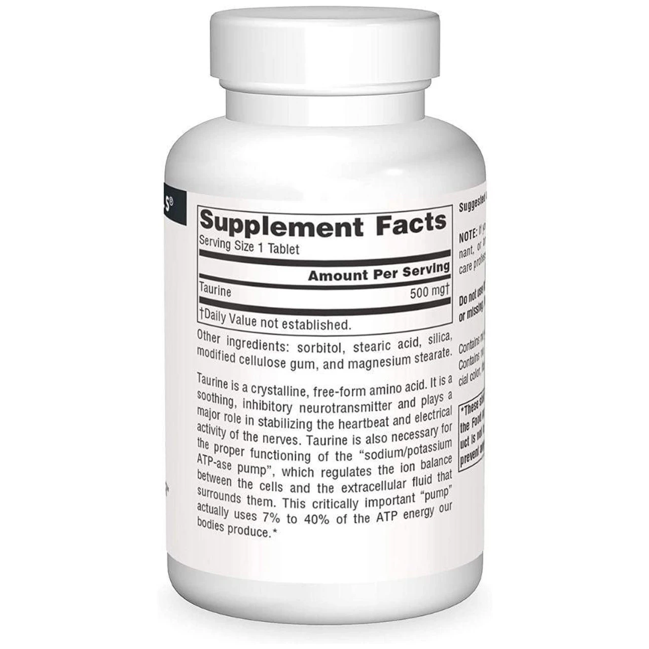 Source Naturals Taurine 500mg 120 Tablets Ingredients and Label